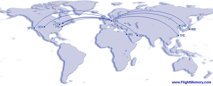 | 所搭乘过最远距离的航线: | 6,986 mi, 12:19 h, Frankfurt (Rhein-Main) - Taipeh (Taoyuan International), 04-16-2026 |