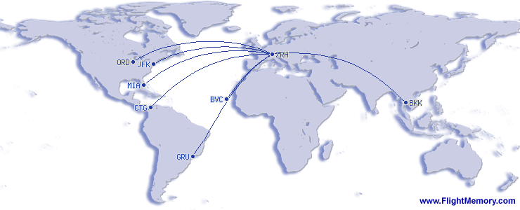 | Leghosszabb repülés (Időtartamban): | 12:00 h, 5,977 mi, Zürich (Kloten) - São Paulo (Guarulhos), 12-14-2025 |