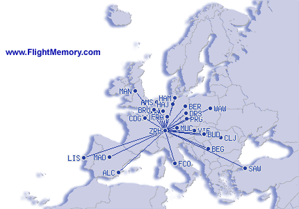 | Najkraci let: | 144 mi, 0:50 h, Zürich (Kloten) - Genf (Geneve-Cointrin), 12-07-2025 |