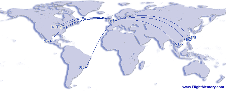| Najduzi let (daljina): | 5,947 mi, 11:00 h, Rio de Janeiro (Galeao) - Amsterdam (Schiphol), 10-27-2025 |