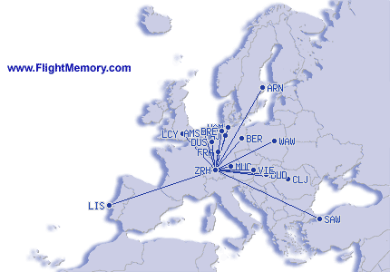 | Voo mais curto: | 162 mi, 0:55 h, Zurich (Kloten) - Munich (Franz Josef Strauss), 03-08-2026 |