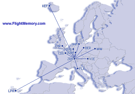 | Najkraci let: | 178 mi, 0:35 h, Frankfurt (Rhein-Main) - Zurich (Kloten), 12-12-2025 |