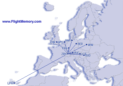 | Najkratší let: | 162 mi, 0:47 h, Zürich (Kloten) - München (Franz Josef Strauß), 12-22-2025 |