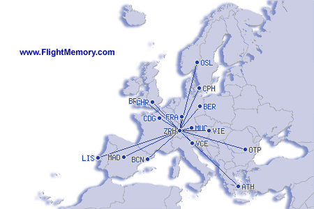 | Najkratší let: | 162 mi, 1:00 h, München (Franz Josef Strauß) - Zürich (Kloten), 04-10-2026 |