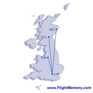 | Najkratší let: | 150 mi, 0:46 h, London (Heathrow) - Manchester (Ringway International), 12-07-2025 |