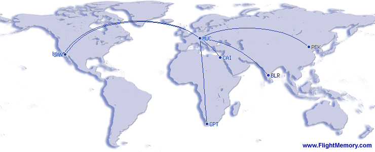 | Najdlhší let (vzdialenosť): | 6,017 mi, 11:10 h, San Diego (Lindbergh Field) - München (Franz Josef Strauß), 03-13-2026 |