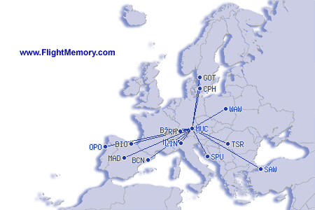 | เที่ยวบินที่สั้นที่สุด: | 162 mi, 0:47 h, Munich (Franz Josef Strauss) - Zurich (Kloten), 04-09-2026 |
