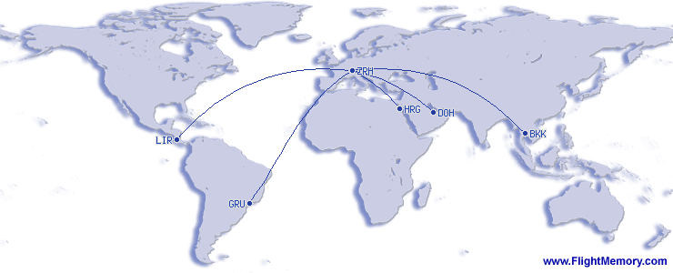 | En uzak Uçuþ: | 5,977 mi, 11:11 h, São Paulo (Guarulhos) - Zürich (Kloten), 03-23-2026 |